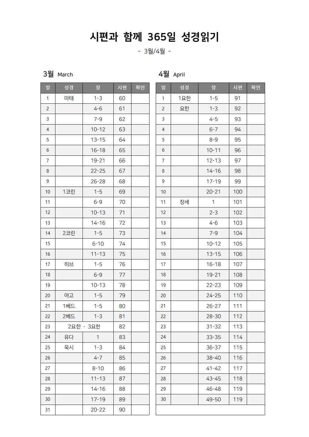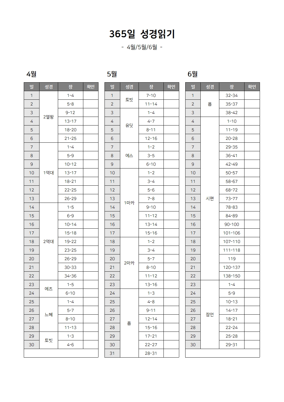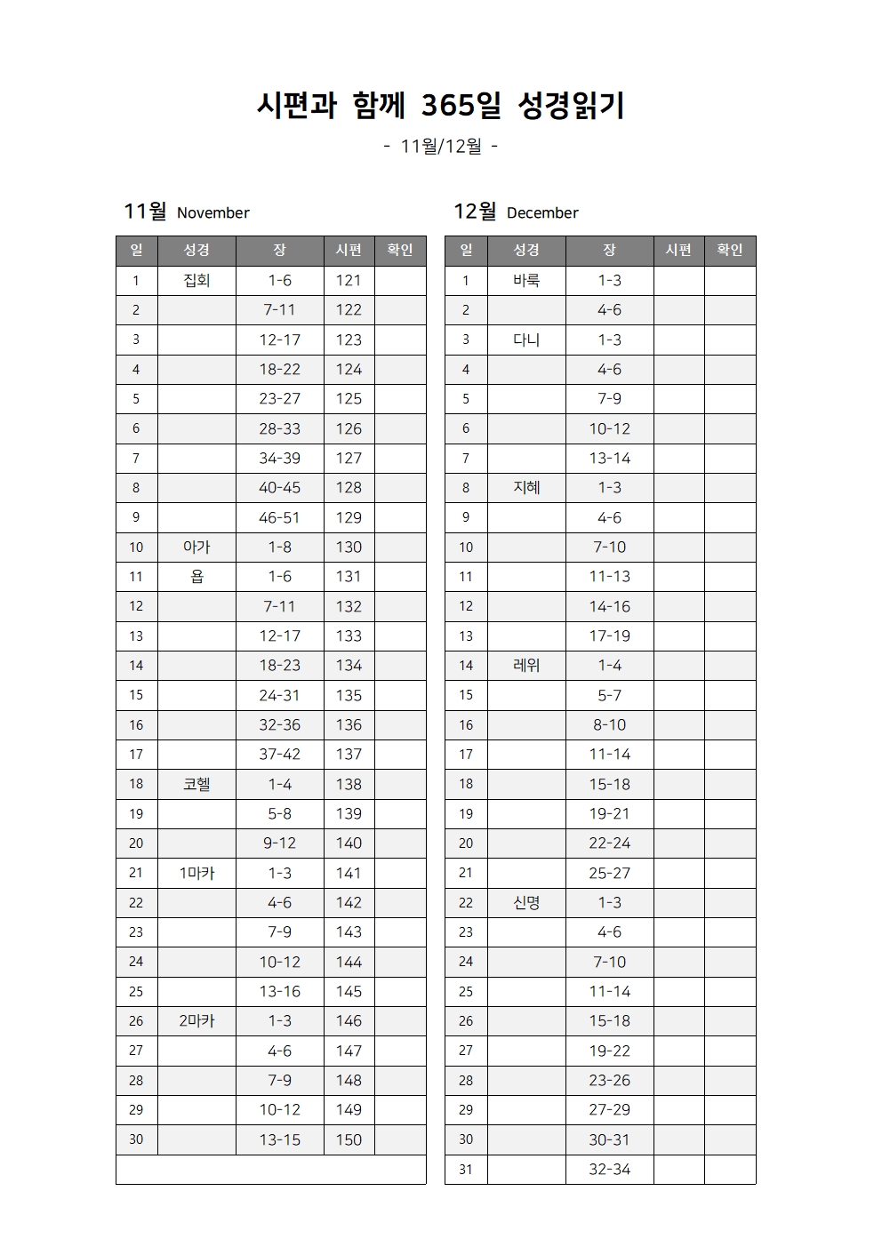 성경읽기 계획표
