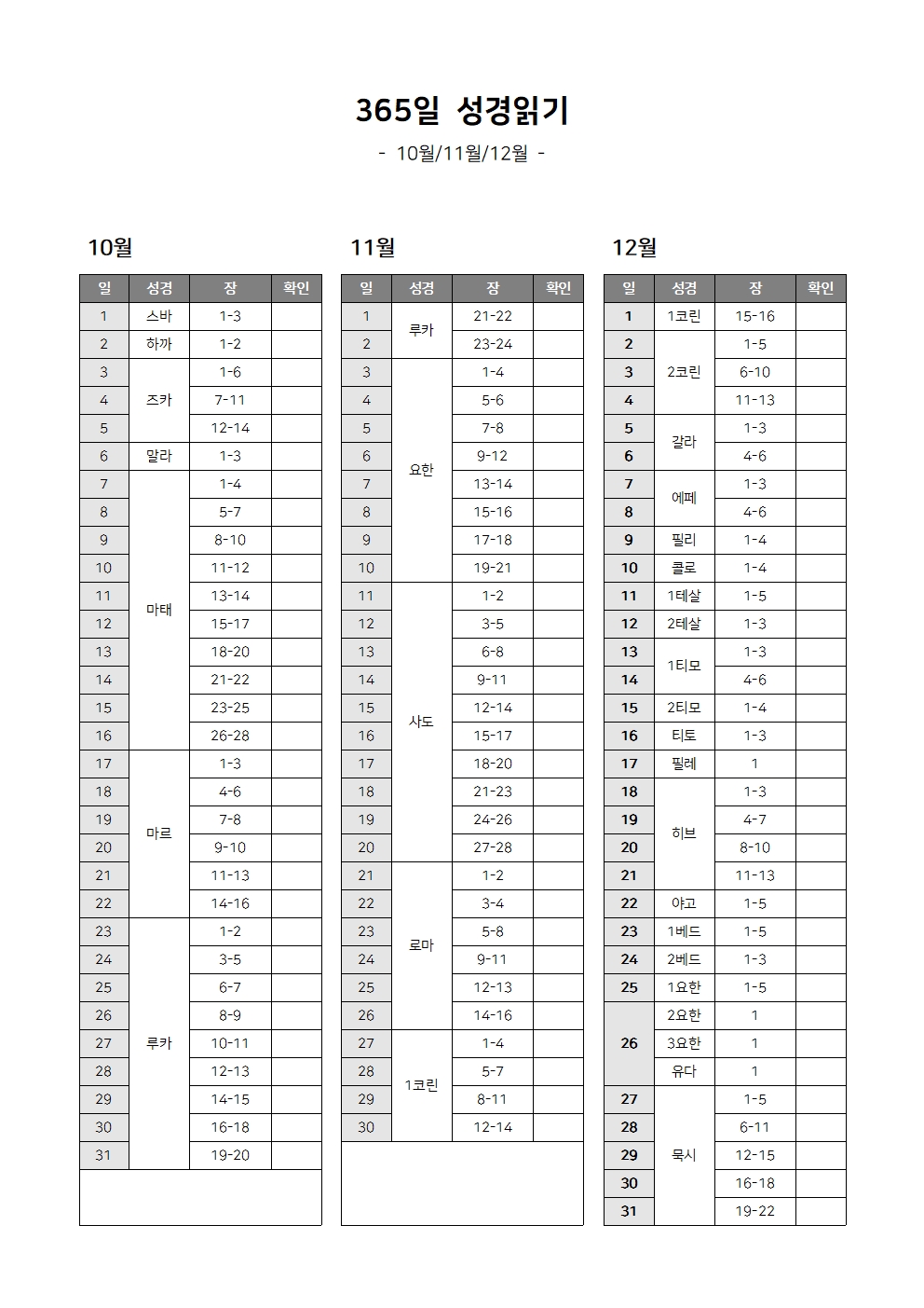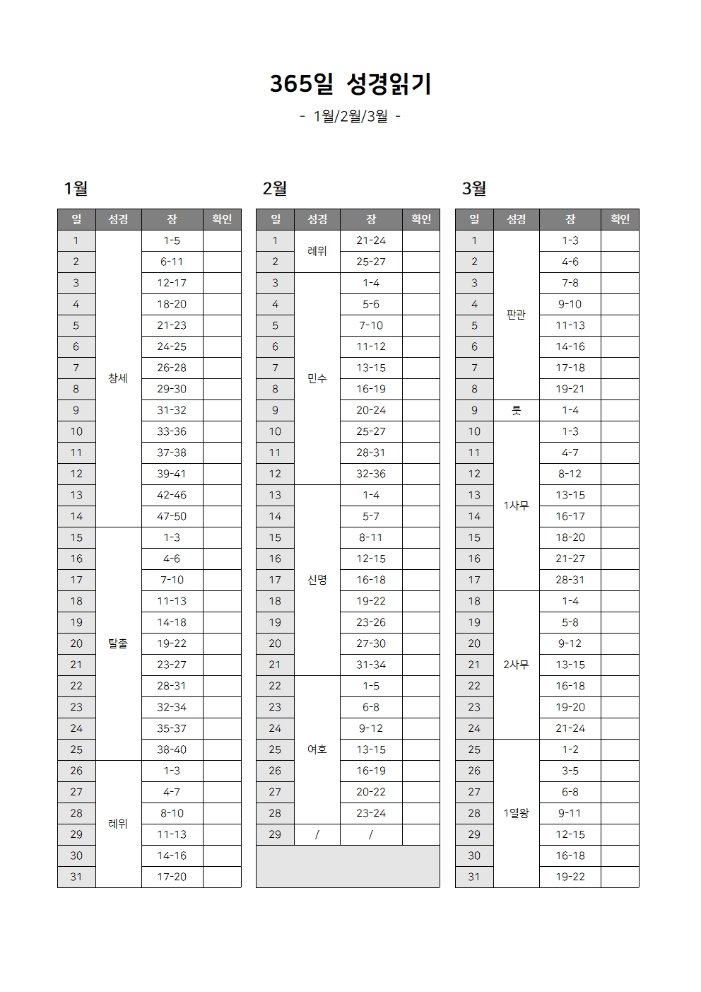 성경읽기 계획표