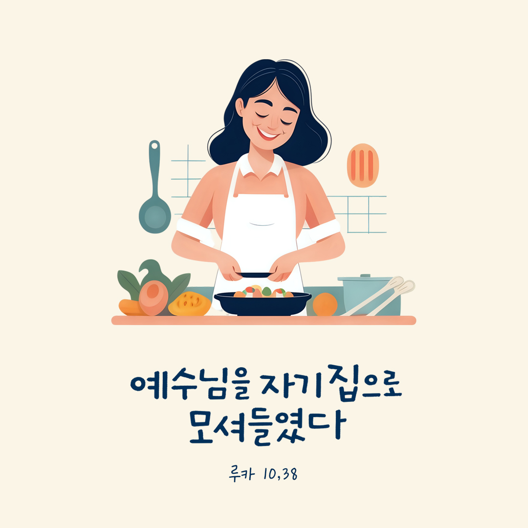 예수님께서 어떤 마을에 들어가셨다. 그러자 마르타라는 여자가 예수님을 자기 집으로 모셔 들였다.