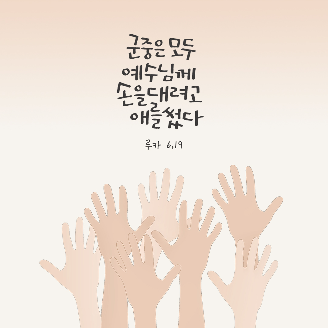 군중은 모두 예수님께 손을 대려고 애를 썼다. 그분에게서 힘이 나와 모든 사람을 고쳐 주었기 때문이다.