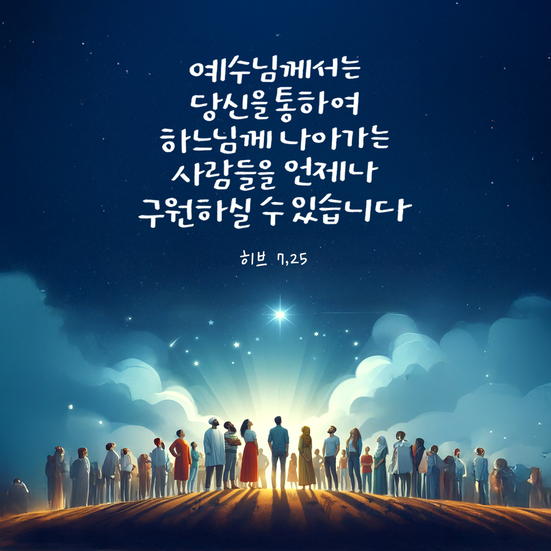당신을 통하여 하느님께 나아가는 사람들을 언제나 구원하실 수 있습니다. 그분께서는 늘 살아 계시어 그들을 위하여 빌어 주십니다.