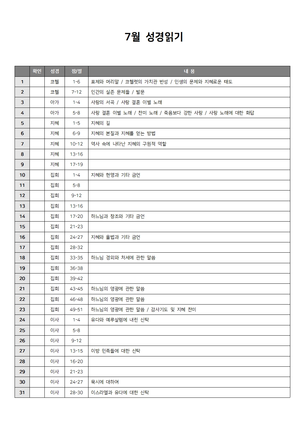7월 성경읽기표
