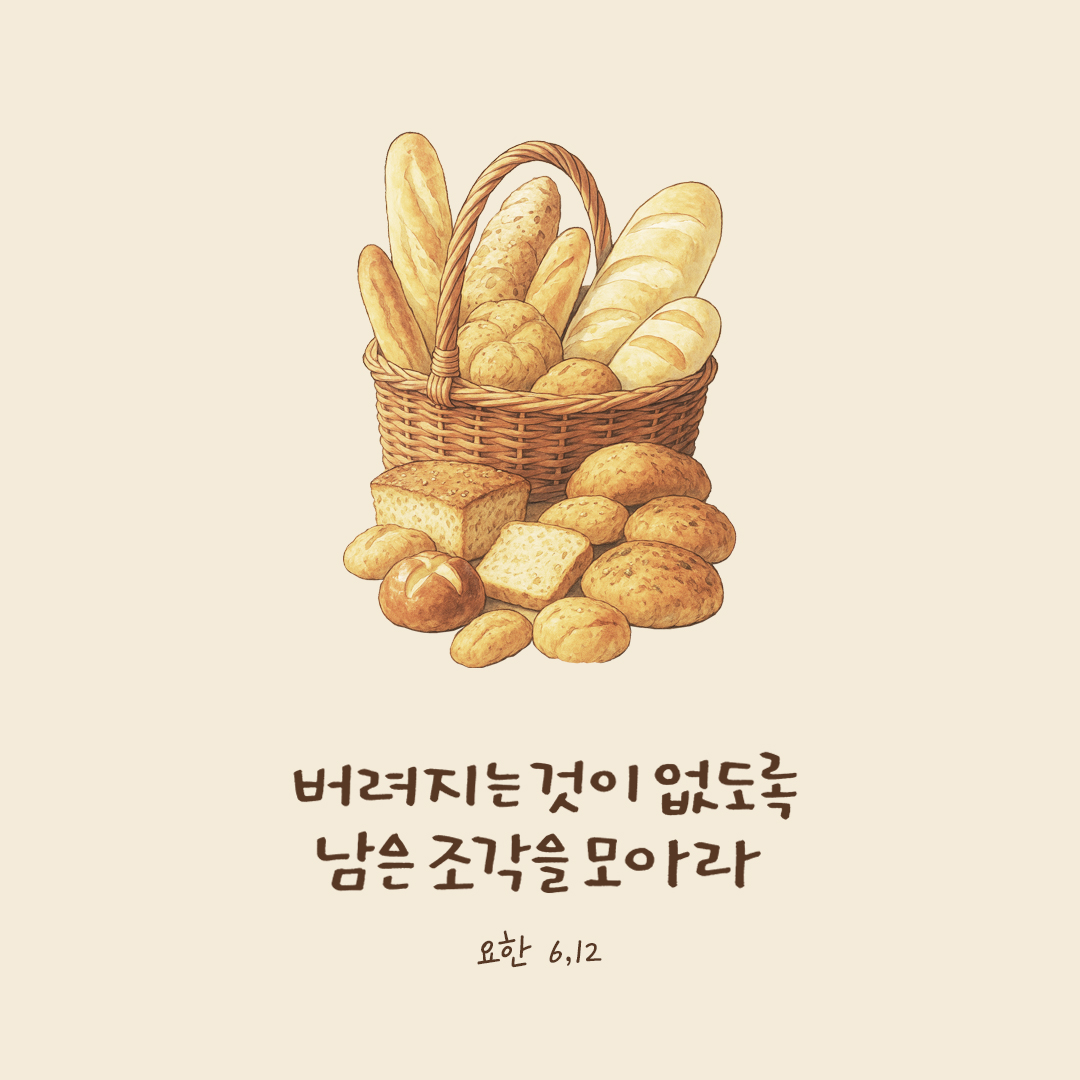 버려지는 것이 없도록 남은 조각을 모으니 성체성사는 생명의 길이 됩니다. 생명의 길에는 작은 조각의 넘치는 사랑도 많습니다. 작아서 못 보았던 것들을 다시 보고 만납니다.