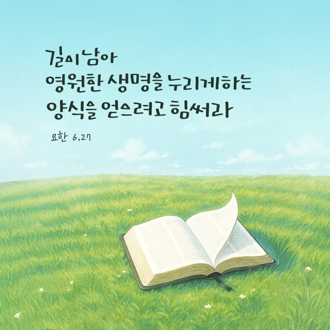 “너희는 썩어 없어질 양식을 얻으려고 힘쓰지 말고, 길이 남아 영원한 생명을 누리게 하는 양식을 얻도록 힘써라. 그 양식은 사람의 아들이 너희에게 줄 것이다.”(요한 6,27)