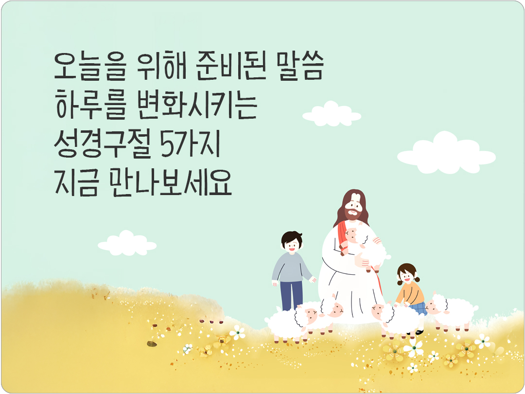 성경 말씀은 단순한 문장이 아니라 삶을 비추는 빛이 되어 하루를 변화시키는 힘이 있어요. 말씀 한 구절이 오늘을 새롭게 하고 큰 기적을 이끌어냅니다. 하루를 변화시키는 성경구절 5가지, 지금 만나보세요! 한 말씀이 오늘을 바꾸는 기적이 되기를 빕니다.