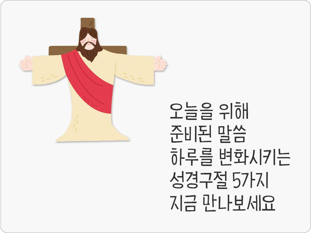 성경 말씀은 단순한 문장이 아니라 삶을 비추는 빛이 되어 하루를 변화시키는 힘이 있어요. 말씀 한 구절이 오늘을 새롭게 하고 큰 기적을 이끌어냅니다. 하루를 변화시키는 성경구절 5가지, 지금 만나보세요! 한 말씀이 오늘을 바꾸는 기적이 되기를 빕니다.