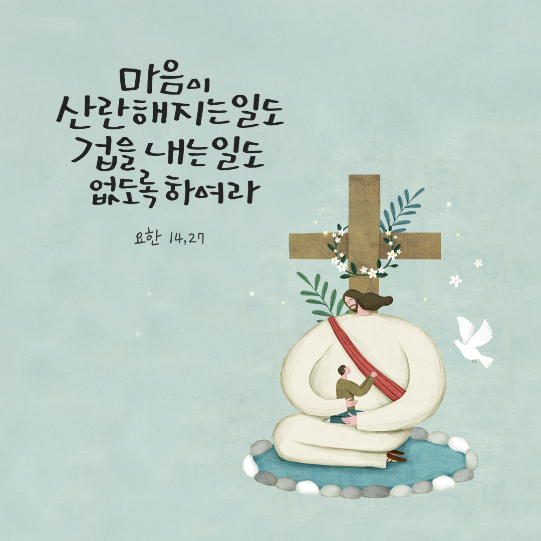 27 나는 너희에게 평화를 남기고 간다. 내 평화를 너희에게 준다. 내가 주는 평화는 세상이 주는 평화와 같지 않다. 너희 마음이 산란해지는 일도, 겁을 내는 일도 없도록 하여라.