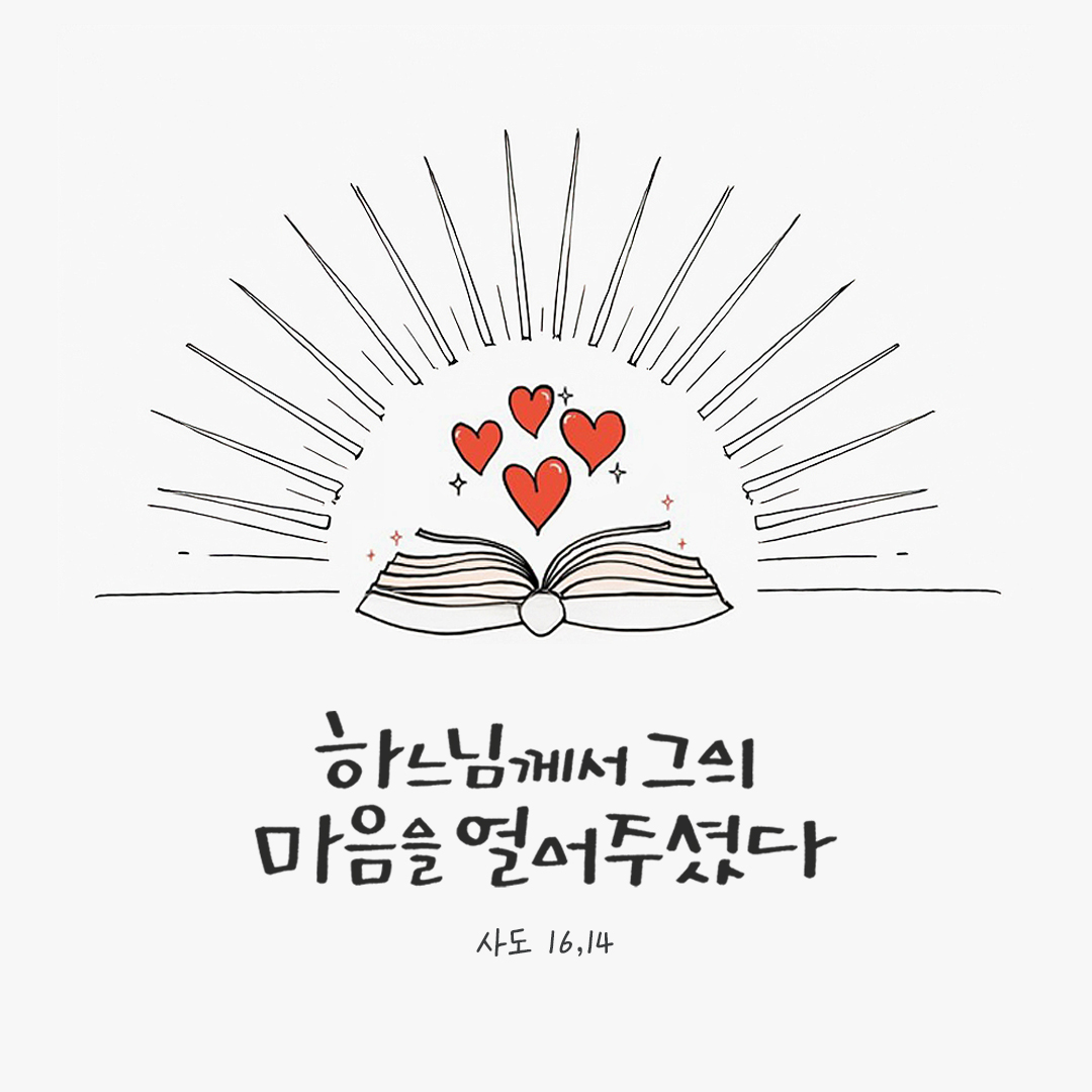 하느님께서 마음을 열어 주신 그는, 바오로가 전하는 하느님 말씀을 귀 기울여 듣고 온 집안과 함께 세례를 받습니다. 그러고서는 바오로 사도에게 “저를 주님의 신자로 여기시면 저의 집에 오셔서 지내십시오.”(사도 16,15) 하고 청합니다.