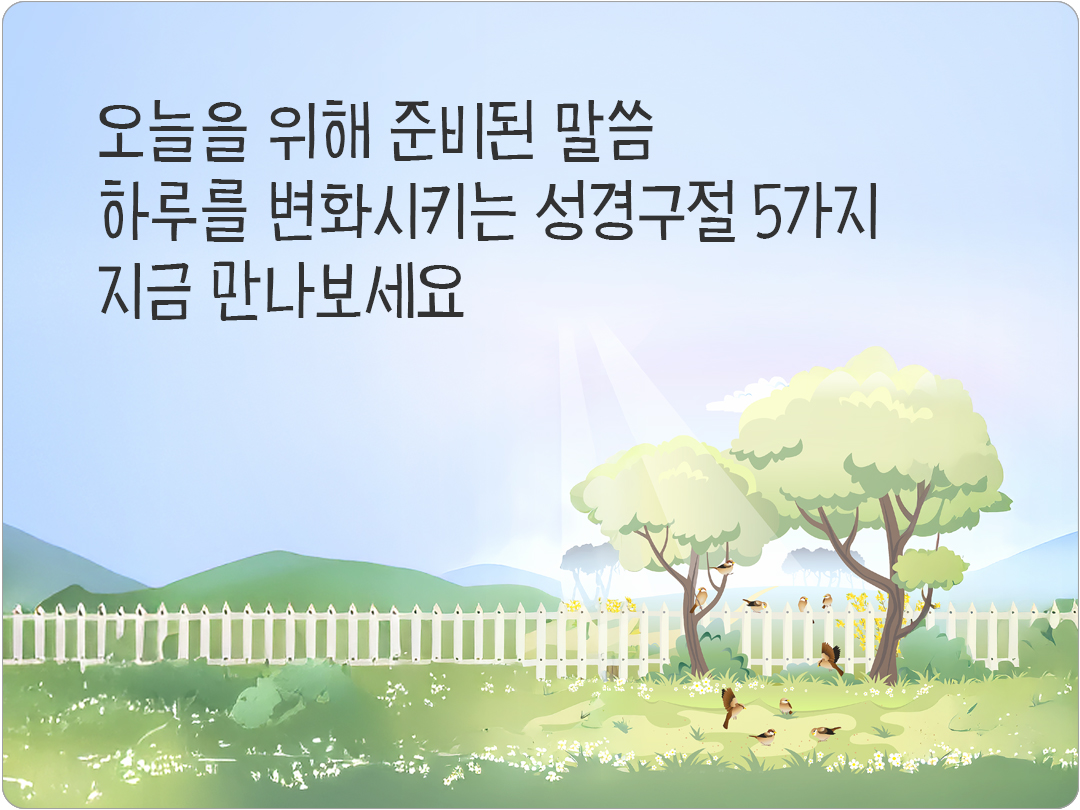 성경 말씀은 단순한 문장이 아니라 삶을 비추는 빛이 되어 하루를 변화시키는 힘이 있어요. 말씀 한 구절이 오늘을 새롭게 하고 큰 기적을 이끌어냅니다. 하루를 변화시키는 성경구절 5가지, 지금 만나보세요! 한 말씀이 오늘을 바꾸는 기적이 되기를 빕니다.