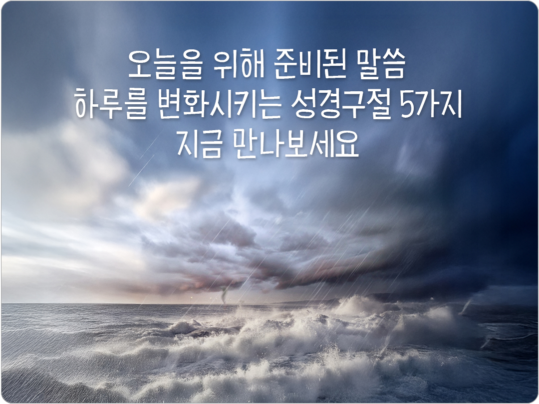 성경 말씀은 단순한 문장이 아니라 삶을 비추는 빛이 되어 하루를 변화시키는 힘이 있어요. 말씀 한 구절이 오늘을 새롭게 하고 큰 기적을 이끌어냅니다. 하루를 변화시키는 성경구절 5가지, 지금 만나보세요! 한 말씀이 오늘을 바꾸는 기적이 되기를 빕니다.