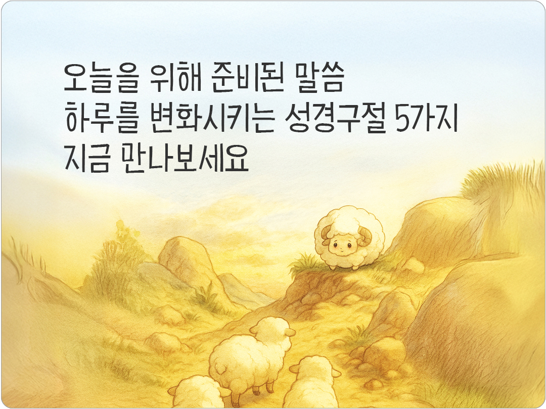 성경 말씀은 단순한 문장이 아니라 삶을 비추는 빛이 되어 하루를 변화시키는 힘이 있어요. 말씀 한 구절이 오늘을 새롭게 하고 큰 기적을 이끌어냅니다. 하루를 변화시키는 성경구절 5가지, 지금 만나보세요! 한 말씀이 오늘을 바꾸는 기적이 되기를 빕니다.