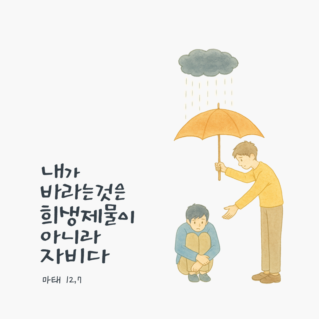 “‘내가 바라는 것은 희생제물이 아니라 자비다’ 하신 말씀이 무슨 뜻인지 너희가 알았더라면, 죄 없는 이들을 단죄하지는 않았을 것이다.”(마태 12,7)