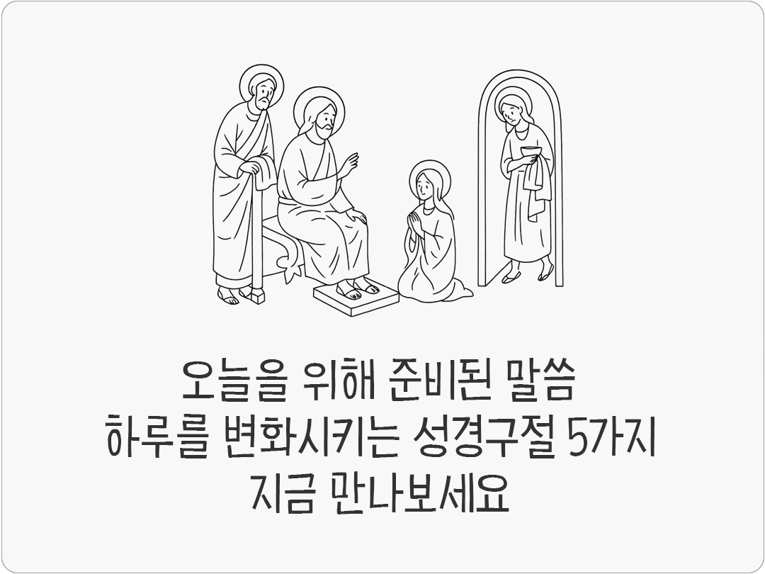 성경 말씀은 단순한 문장이 아니라 삶을 비추는 빛이 되어 하루를 변화시키는 힘이 있어요. 말씀 한 구절이 오늘을 새롭게 하고 큰 기적을 이끌어냅니다. 하루를 변화시키는 성경구절 5가지, 지금 만나보세요! 한 말씀이 오늘을 바꾸는 기적이 되기를 빕니다.