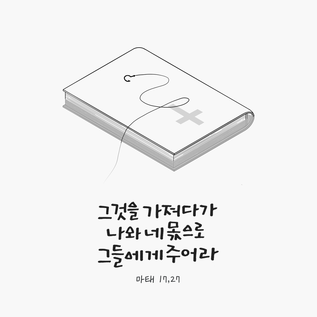 그렇습니다. 저는 한 마리의 ‘물고기’입니다. 당신 생명의 호수를 헤엄쳐 다니는 한 마리의 물고기입니다. 당신 사랑의 파도에 몸을 맡기고 살아가는 물고기입니다. 당신 그물에 걸려든 한 마리의 물고기입니다. 그리고 제 입에는 당신 형상이 새겨진 고귀한 동전이 물려있습니다. 당신 말씀이 물려있습니다. 제가 당신께 속해 있기 때문입니다. 당신 생명의 말씀이 저를 먹여 살리고 있기 때문입니다.