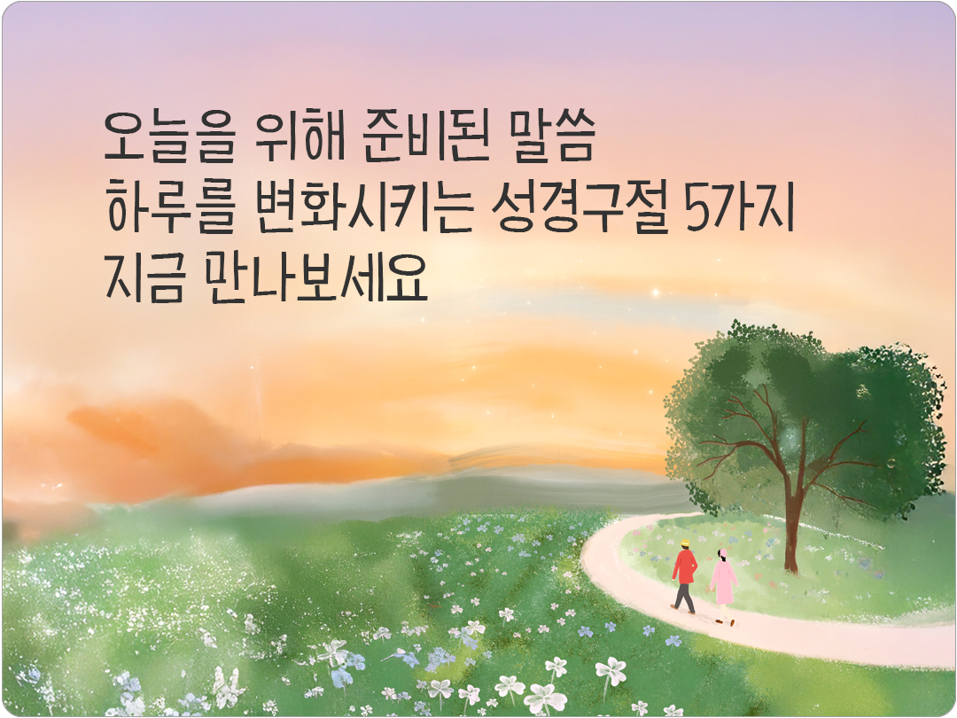 성경 말씀은 단순한 문장이 아니라 삶을 비추는 빛이 되어 하루를 변화시키는 힘이 있어요. 말씀 한 구절이 오늘을 새롭게 하고 큰 기적을 이끌어냅니다. 하루를 변화시키는 성경구절 5가지, 지금 만나보세요! 한 말씀이 오늘을 바꾸는 기적이 되기를 빕니다.