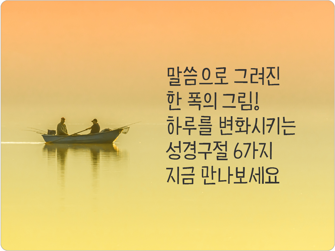 성경 말씀은 단순한 문장이 아니라 삶을 비추는 빛이 되어 하루를 변화시키는 힘이 있어요. 말씀 한 구절이 오늘을 새롭게 하고 큰 기적을 이끌어냅니다. 하루를 변화시키는 성경구절 5가지, 지금 만나보세요! 한 말씀이 오늘을 바꾸는 기적이 되기를 빕니다.