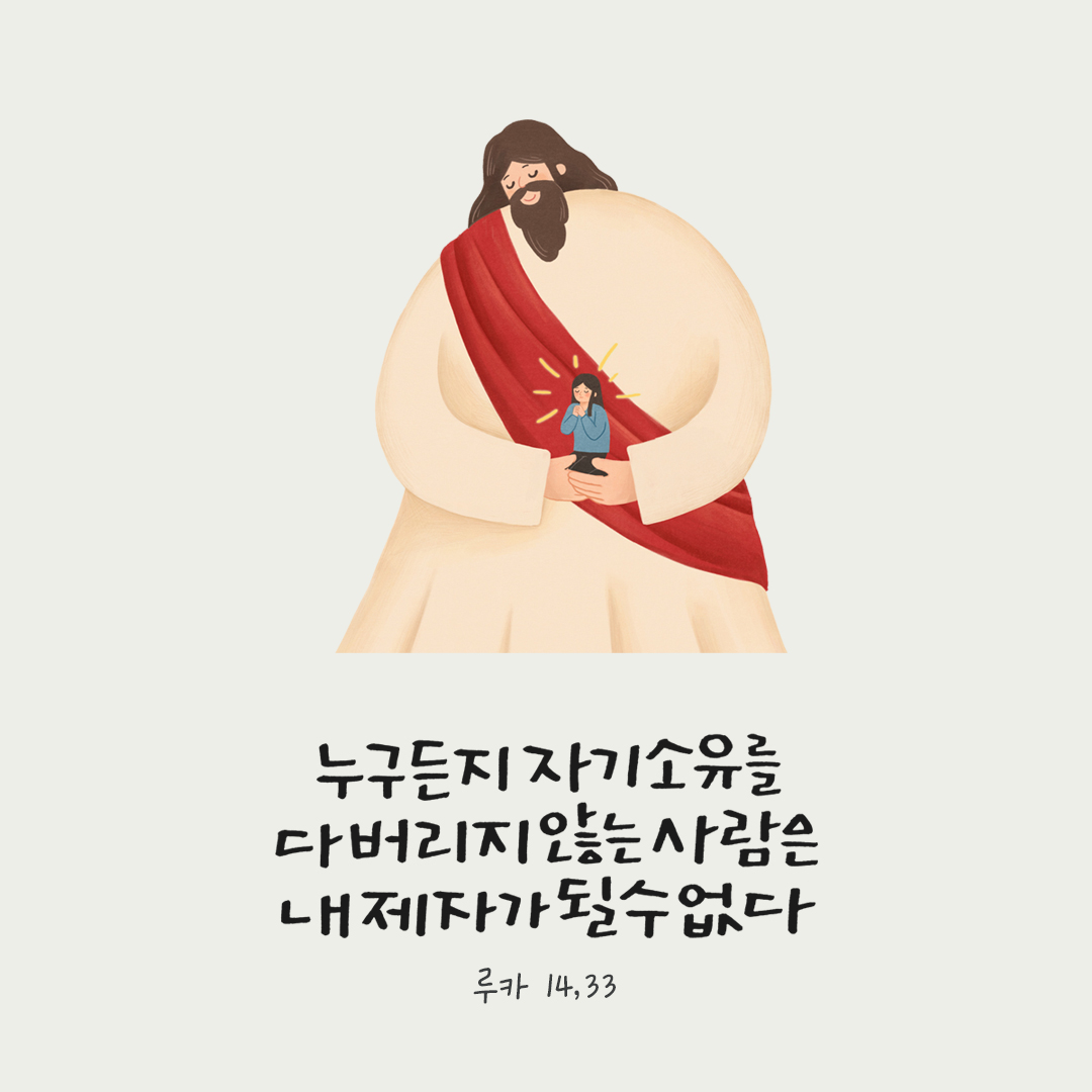 자기 소유를 다 버리지 않는 사람은 내 제자가 될 수 없다.