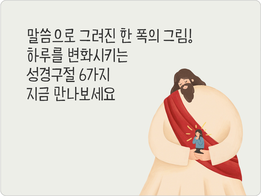 성경 말씀은 단순한 문장이 아니라 삶을 비추는 빛이 되어 하루를 변화시키는 힘이 있어요. 말씀 한 구절이 오늘을 새롭게 하고 큰 기적을 이끌어냅니다. 하루를 변화시키는 성경구절 5가지, 지금 만나보세요! 한 말씀이 오늘을 바꾸는 기적이 되기를 빕니다.