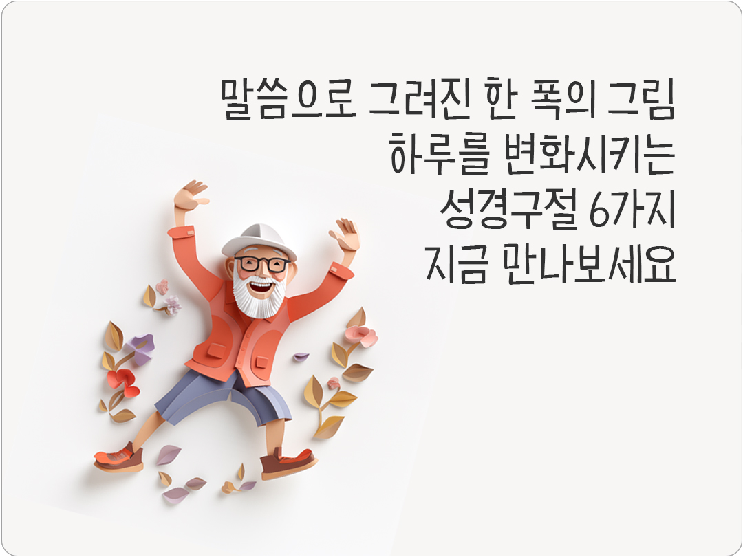 성경 말씀은 단순한 문장이 아니라 삶을 비추는 빛이 되어 하루를 변화시키는 힘이 있어요. 말씀 한 구절이 오늘을 새롭게 하고 큰 기적을 이끌어냅니다. 하루를 변화시키는 성경구절 6가지, 지금 만나보세요! 한 말씀이 오늘을 바꾸는 기적이 되기를 빕니다.