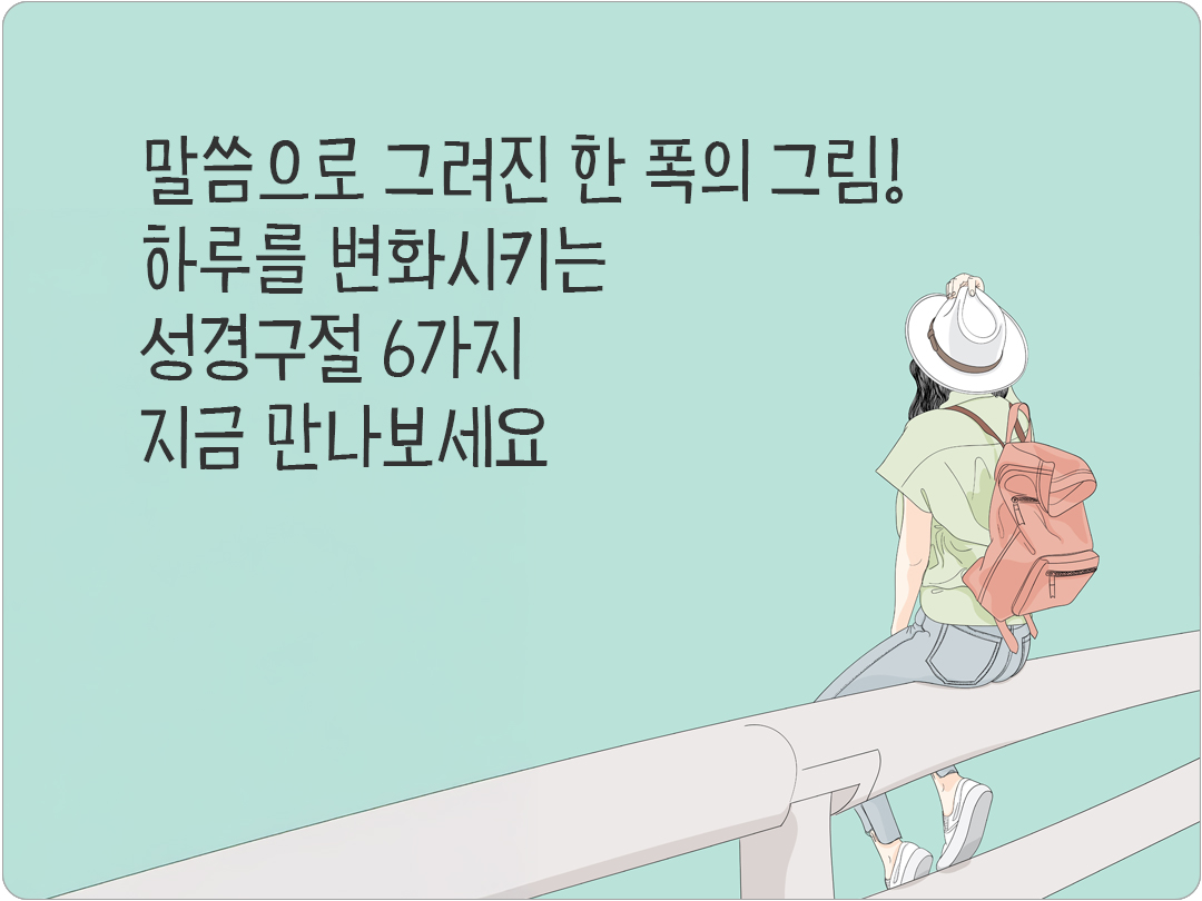 성경 말씀은 단순한 문장이 아니라 삶을 비추는 빛이 되어 하루를 변화시키는 힘이 있어요. 말씀 한 구절이 오늘을 새롭게 하고 큰 기적을 이끌어냅니다. 하루를 변화시키는 성경구절 6가지, 지금 만나보세요! 한 말씀이 오늘을 바꾸는 기적이 되기를 빕니다.
