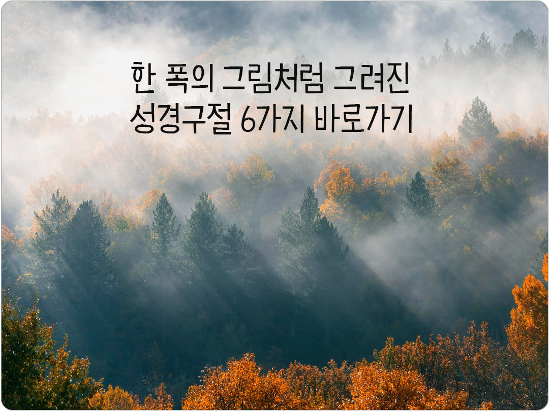말씀 한 구절이 하루를 새롭게 하고 마음을 위로해주며, 때로는 예상치 못한 기적을 이끌어냅니다. 오늘을 위해 한 폭의 그림처럼 그려진 6가지 성경구절 지금 바로 만나보세요!