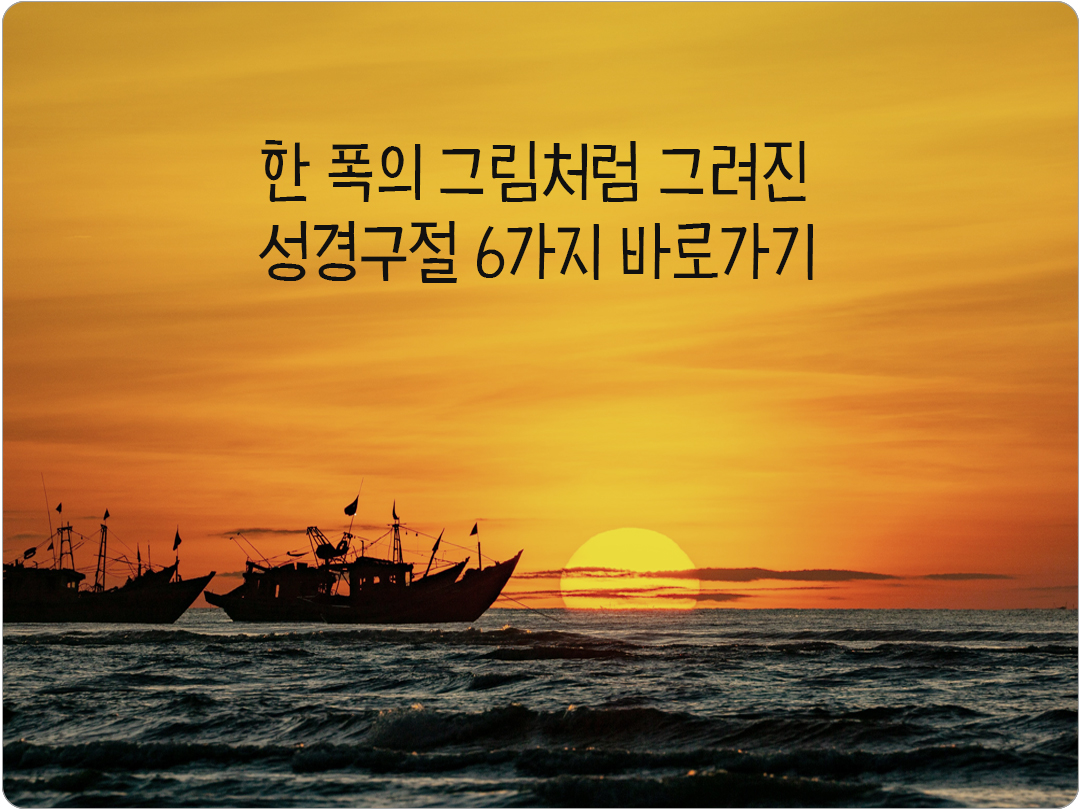 말씀 한 구절이 하루를 새롭게 하고 마음을 위로해주며, 때로는 예상치 못한 기적을 이끌어냅니다. 오늘을 위해 한 폭의 그림처럼 그려진 6가지 성경구절 지금 바로 만나보세요!