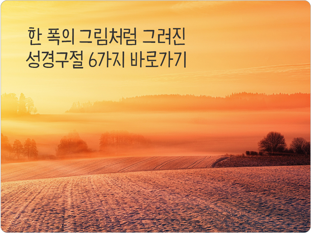 말씀 한 구절이 하루를 새롭게 하고 마음을 위로해주며, 때로는 예상치 못한 기적을 이끌어냅니다. 오늘을 위해 한 폭의 그림처럼 그려진 6가지 성경구절 지금 바로 만나보세요!