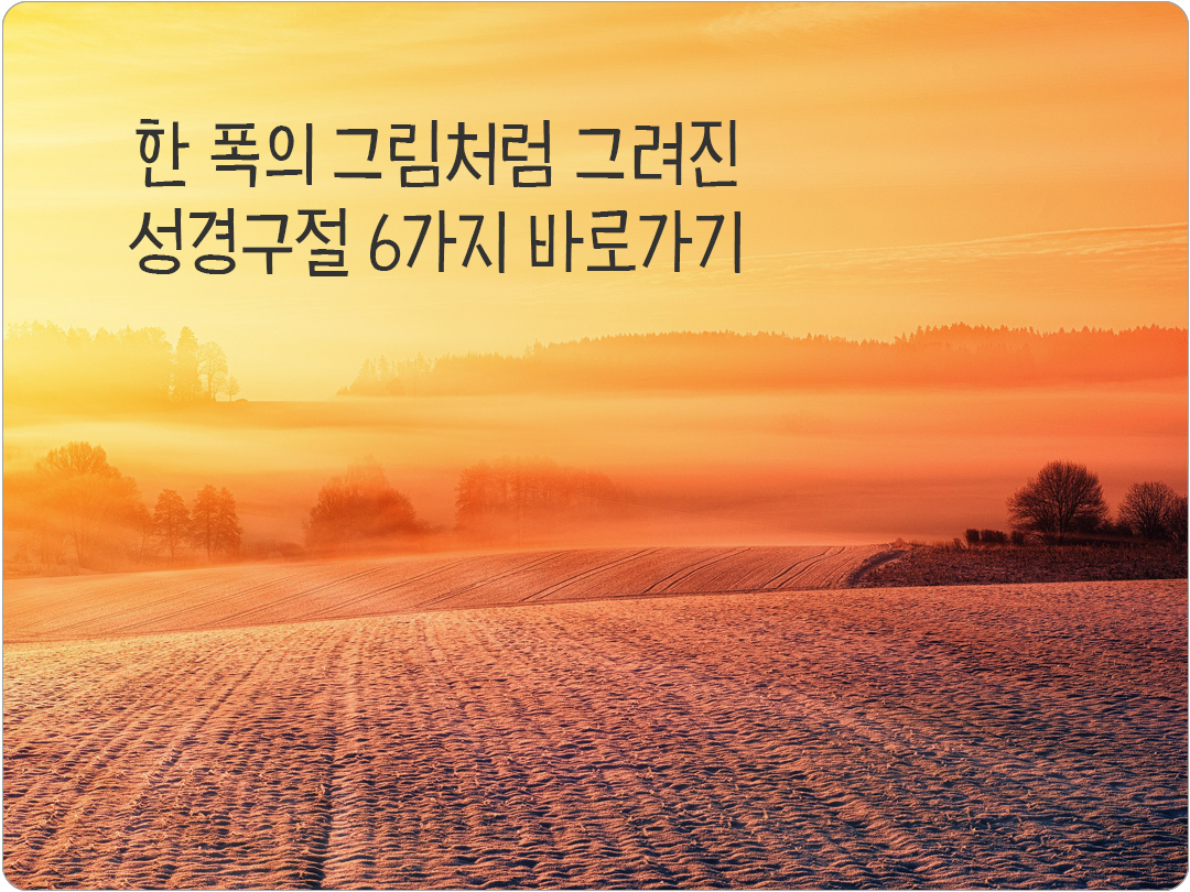 말씀 한 구절이 하루를 새롭게 하고 마음을 위로해주며, 때로는 예상치 못한 기적을 이끌어냅니다. 오늘을 위해 한 폭의 그림처럼 그려진 6가지 성경구절 지금 바로 만나보세요!