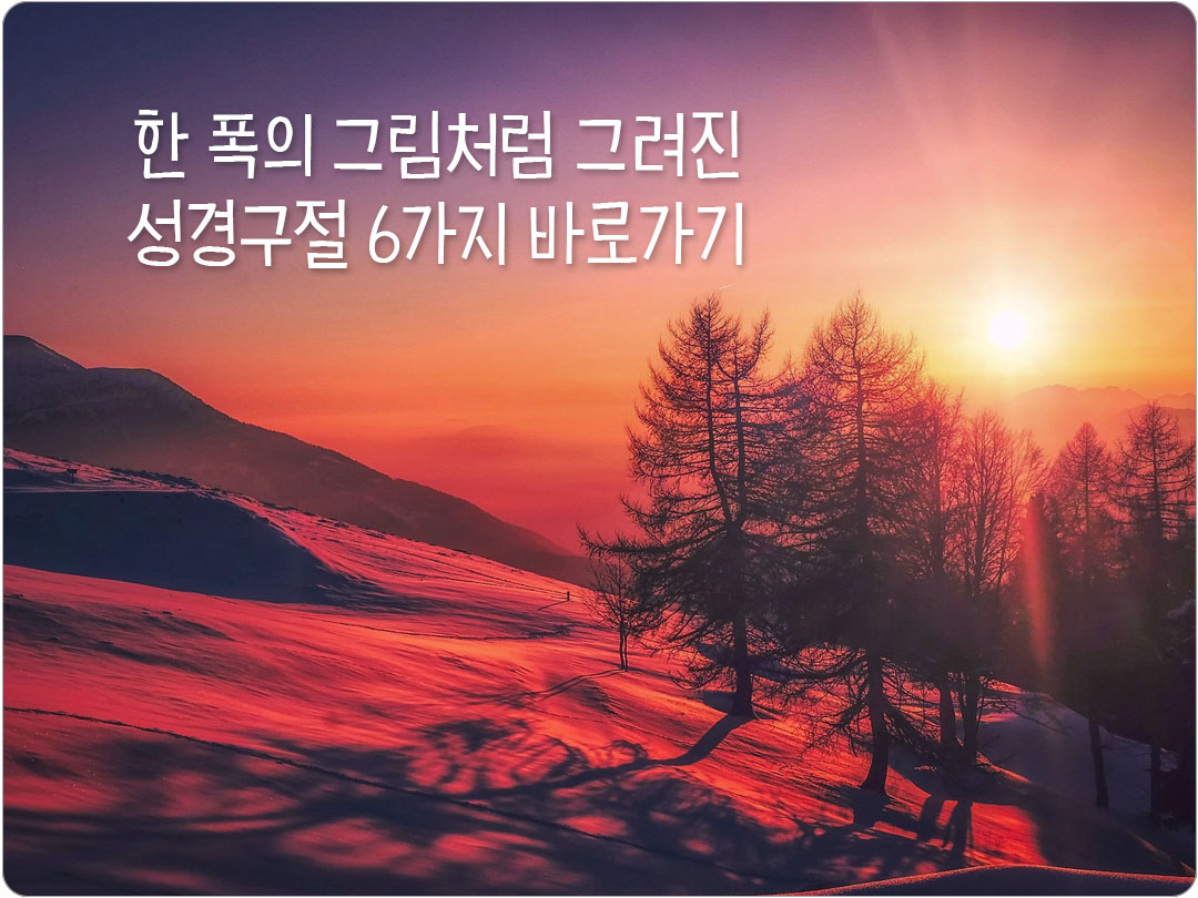 말씀 한 구절은 하루를 새롭게 하고 지친 마음에 조용한 위로를 건네며, 때로는 예상하지 못한 깨달음과 용기를 선물합니다. 오늘을 위해 한 폭의 그림처럼 그려진 6가지 성경구절을 통해 지금 이 순간, 삶에 꼭 필요한 말씀을 만나보세요.