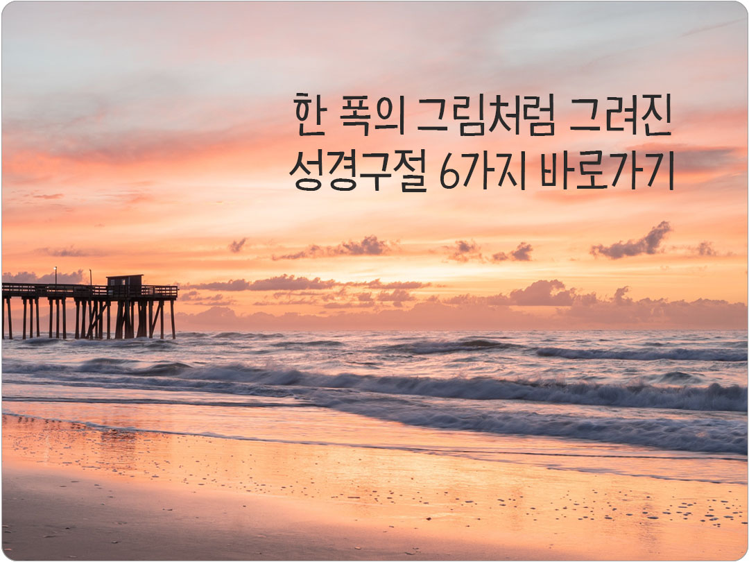 말씀 한 구절은 하루를 새롭게 하고 지친 마음에 조용한 위로를 건네며, 때로는 예상하지 못한 깨달음과 용기를 선물합니다. 오늘을 위해 한 폭의 그림처럼 그려진 6가지 성경구절을 통해 지금 이 순간, 삶에 꼭 필요한 말씀을 만나보세요.