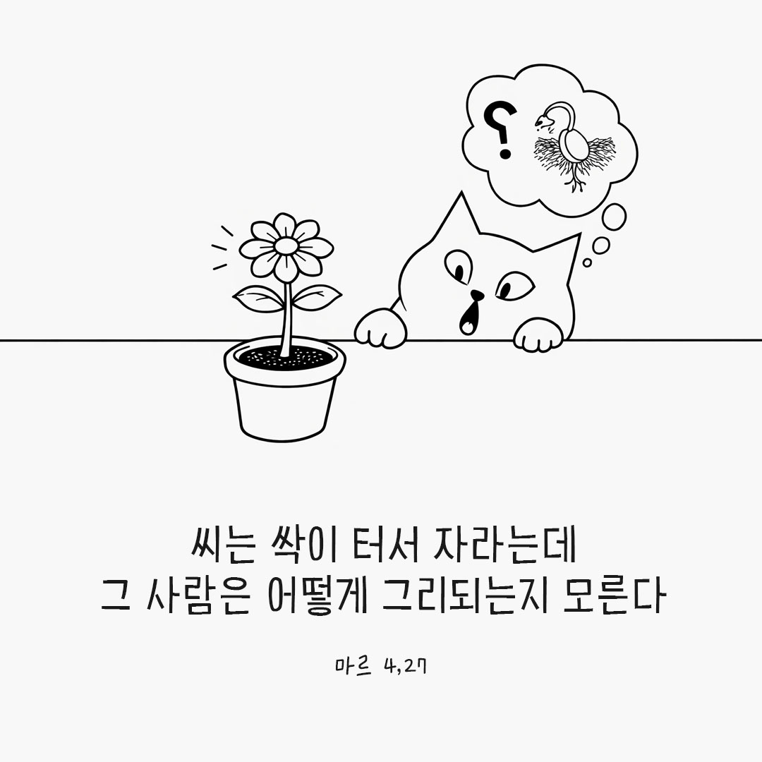 “땅에 씨를 뿌려놓으면, 밤에 자고 낮에 일어나고 하는 사이에 씨는 싹이 터서 자라는데, 그 사람은 어떻게 그리되는지 모른다.”(마르 4,27)