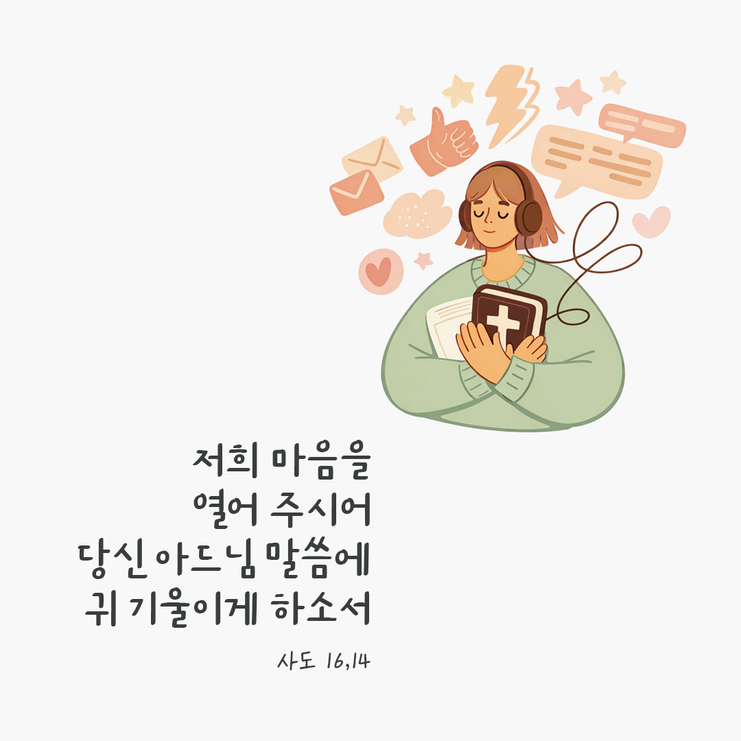 우리가 듣지 않으려 했던 말은 무엇입니까? 우리가 외면해 온 목소리는 누구의 것입니까? 말씀을 듣고 자신의 언어를 회복하는 순간, 우리는 다시 자기 자리를 찾게 됩니다. 참으로 우리의 귀가 열리면 하느님을 듣게 되고, 참으로 우리의 입이 열리면 사랑을 말하게 될 것입니다. 제대로 듣게 하시고 제대로 말하게 하시는 분이 바로 하느님이십니다.