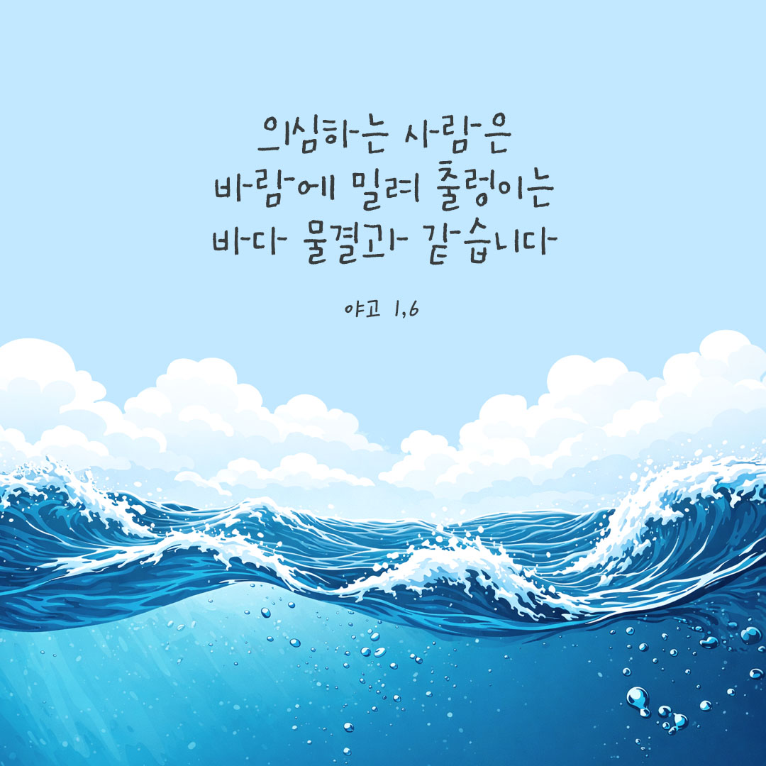6 그러나 결코 의심하는 일 없이 믿음을 가지고 청해야 합니다. 의심하는 사람은 바람에 밀려 출렁이는 바다 물결과 같습니다.