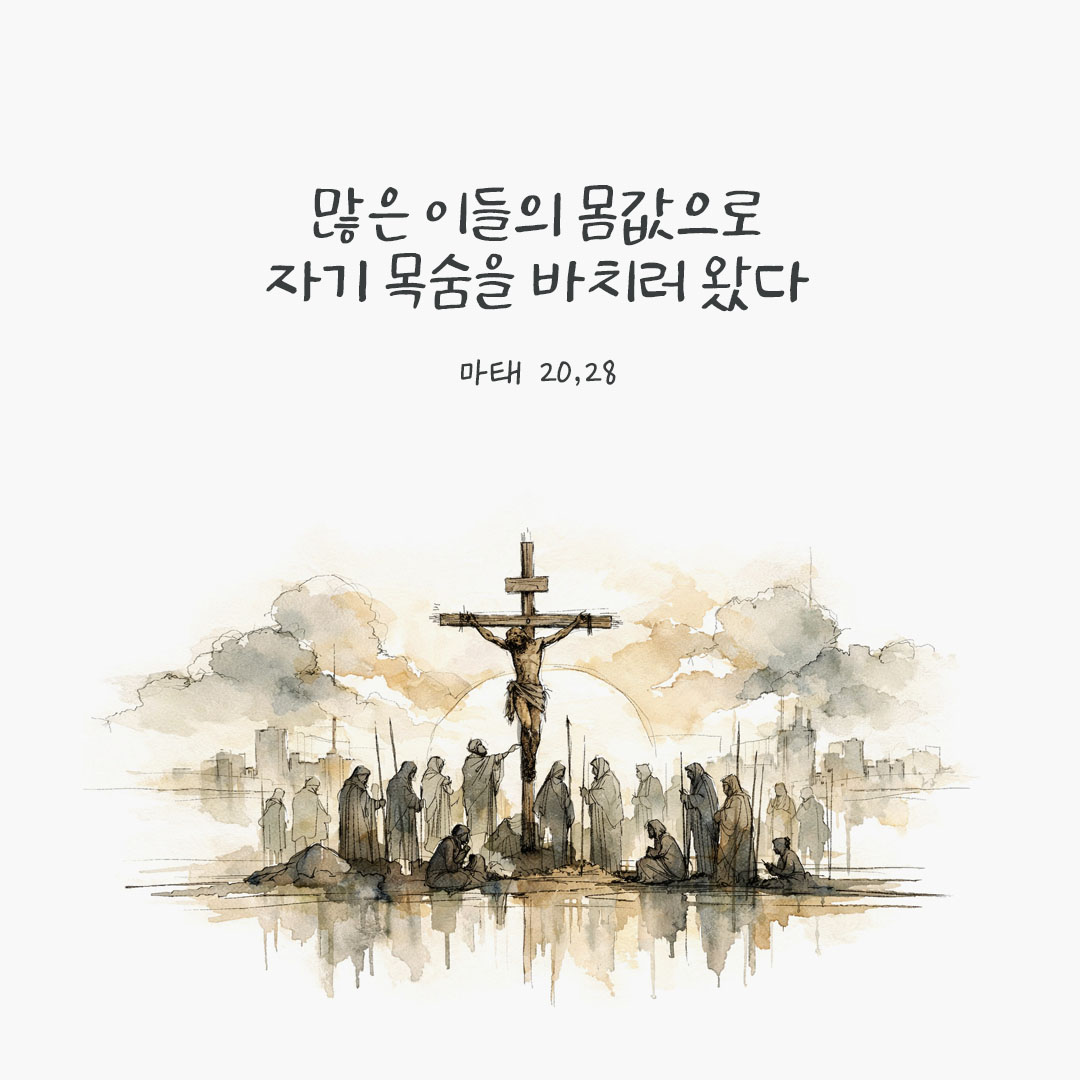 “바치러 왔다.”라는 이 표현은 강요된 희생이 아니라 자발적 결단을 드러냅니다. “많은 이들”이라는 표현은 구원이 공동체적 차원임을 드러냅니다. 예수님의 십자가는 우리의 죄를 기억하라는 표지가 아니라 하느님의 사랑을 신뢰하라는 초대입니다.