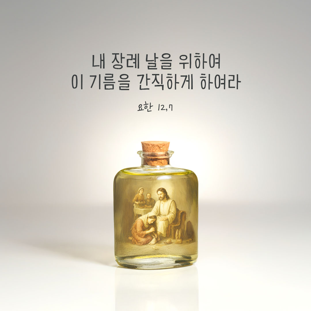 이번 한 주간만큼은 마리아처럼 온 마음으로 주님께 다가갑시다. 성주간의 여정 속에서 주님의 사랑을 더 깊이 체험하고, 부활의 기쁨을 누릴 수 있는 은총이 우리 모두에게 함께하기를 기도합니다.
