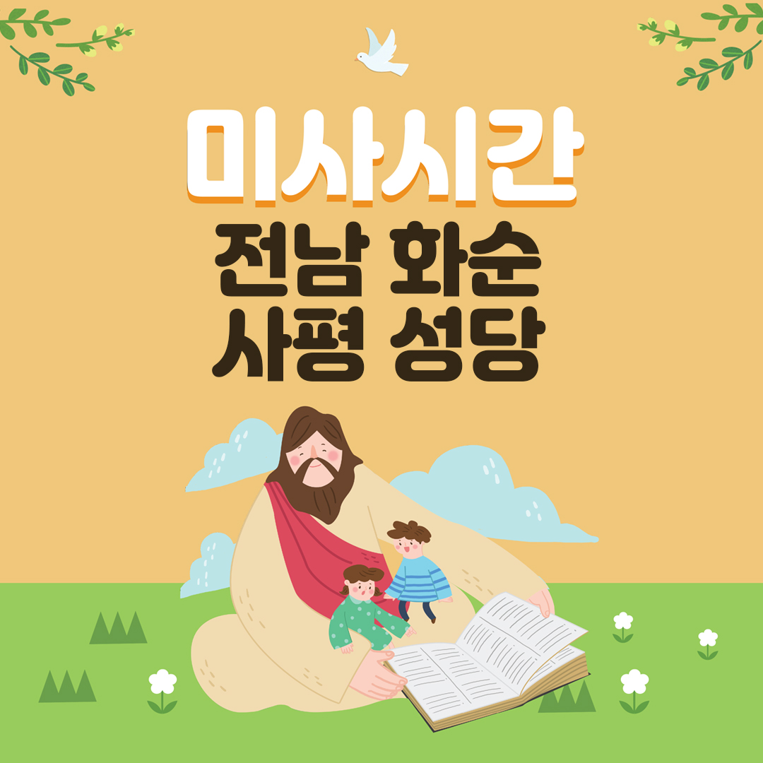 미사 시간은 변동될 수 있으니 전남 화순 사평 성당 (061-373-9008)으로 확인하시기 바랍니다. 전화번호를 클릭하면 사평성당으로 연결됩니다.