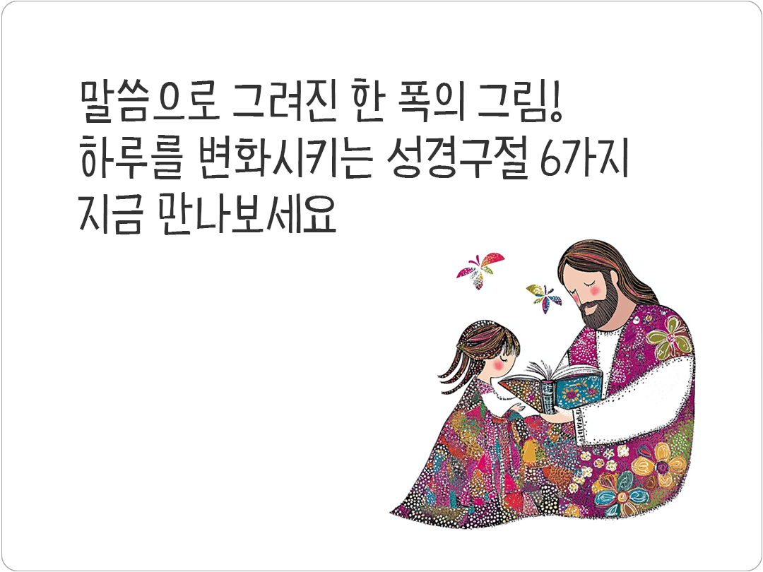 성경 말씀은 단순한 문장이 아니라 삶을 비추는 빛이 되어 하루를 변화시키는 힘이 있어요. 말씀 한 구절이 오늘을 새롭게 하고 큰 기적을 이끌어냅니다. 하루를 변화시키는 성경구절 6가지, 지금 만나보세요! 한 말씀이 오늘을 바꾸는 기적이 되기를 빕니다.